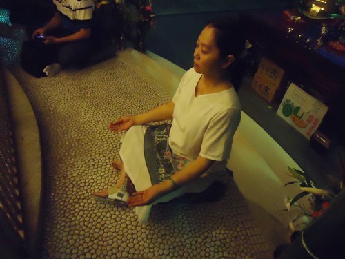 我與弟弟在神殿前方靜坐